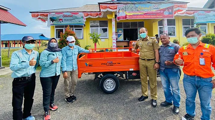 Serah terima bantuan dua unit motor sampah dilakukan Manager External Relations PT Vale Indonesia Blok Bahodopi, Asriani Amiruddin kepada Camat Bahodopi, Tahir. Pengadaan motor sampah merupakan bagian dari Program Pemberdayaan Masyarakat (PPM) di Kecamatan Bahodopi.
