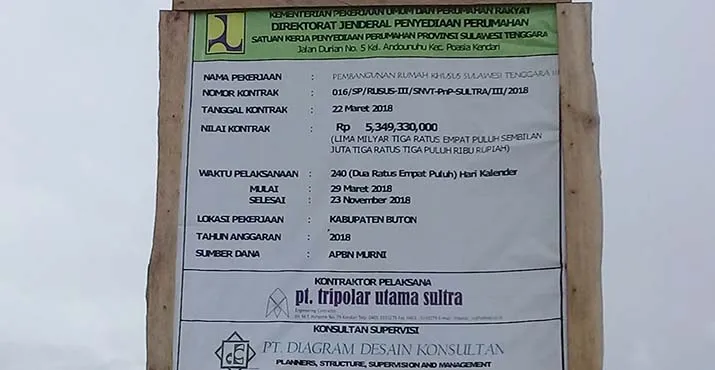 ZONASULTRA.COM, PASARWAJO – Pembangunan 50 unit rumah yang diperuntukkan bagi masyarakat nelayan di Desa Holimombo, Kecamatan Wabula, Kabupaten Buton, Sulawesi Tenggara (Sultra) terancam dihentikan sementara waktu karena PT Tripolar Utama Sultra sebagai kontraktor pelaksana belum memasukkan permohonan dokumen izin lingkungan dan tata ruang dari pemerintah setempat.