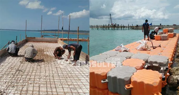 JETTY APUNG – Pembangunan Jetty Apung yang ditargetkan rampung bulan ini. (Nova Ely Surya/ZONASULTRA.COM)
