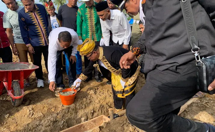 ZONASULTRA.ID, LAWORO – Penjabat (Pj) Bupati Mubar, Bahri meletakkan batu pertama pembangunan pasar rakyat Kambara, Kelurahan Tiworo, Kecamatan Tiworo Kepulauan (Tikep), Sabtu (23/7/2022). Pembangunan pasar menelan anggaran sebesar Rp2,7 miliar lebih.