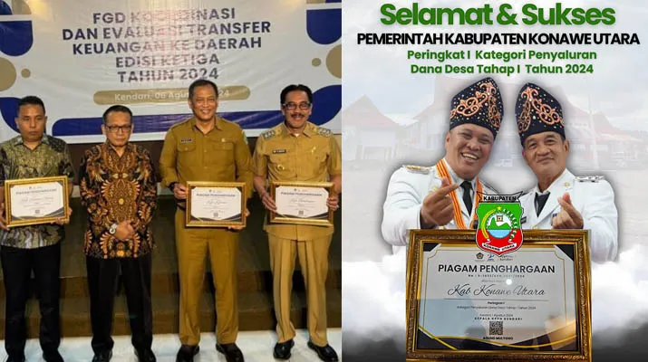 Dalam prestasi ini, diumumkan oleh Kementerian Keuangan yang memberikan apresiasi terhadap kinerja pemerintah daerah Konut dalam mengelola dan menyalurkan dana desa secara efektif dan tepat waktu, pada Selasa (6/8/2024).