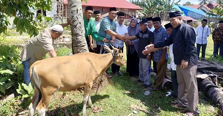“27 ekor sapi di bagi ke tiap kecamatan, masing-masing mendapat 2 ekor sapi. Sifatnya umum untuk semua masyarakat. Untuk penyalurannya dagingnya di serahkan ke pemerintah kecamatan,”ujarnya dikonfirmasi usai pelaksanaan salat idul adha.