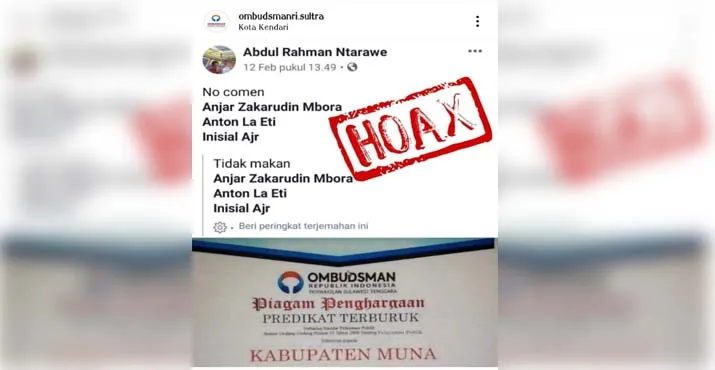 Salah satunya pemilik akun Facebook (FB) bernama Abdul Rahman Ntarawe yang memposting gambar piagam penghargaan terburuk bagi Pemkab Muna dengan nilai 0,00 yang dikeluarkan Ombudsman Republik Indonesia (ORI) Sultra. Status yang diposting sejak 12 Februari 2020 pada pukul 13.49 Wita tersebut dinilai telah mencemarkan nama baik Pemda Muna.