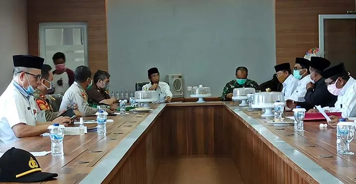 RAPAT BERSAMA - Pemkab konsel saat melakukan rapat bersama untuk menentukan besaran zakat fitrah tahun 2020 ini. digelar di kantor bupati konsel, Rabu (16/4/2020) kemarin. (Foto: istimewa)