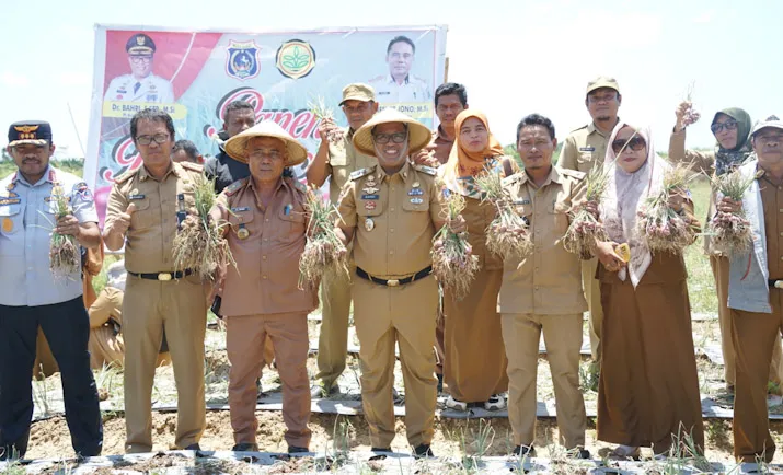 Pj Bupati Mubar Bahri memberikan apresiasi kepada kelompok tani yang telah berhasil dan sukses menjadi contoh dalam gerakan penanaman bawang merah ini.