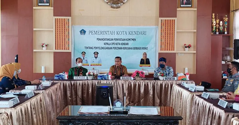 ZONASULTRA.COM, KENDARI – Wali Kota Kendari Sulkarnain Kadir bersama kepala organasasi perangkat daerah (OPD) Kota Kendari menandatangani penyelenggaraan perizinan berusaha berbasis risiko, pada Kamis (20/1/2022).