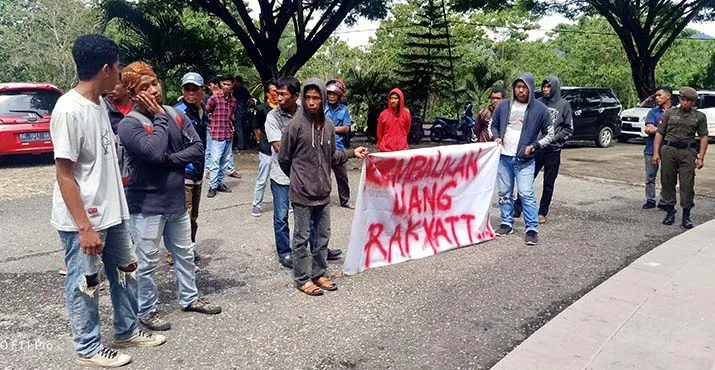 Aksi mereka dikawal ketat oleh Kepolisian dan Satuan Polisi Pamong praja (Satpol-PP). Setelah melakukan orasi beberapa menit, mereka membawa poster yang bertuliskan “kembalikan uang rakyat” dan menyatakan bahwa Pelaksana Kerja (PK) Program RTLH diduga melakukan pemotongan sebesar Rp3,5 juta setiap penerima bantuan tersebut.