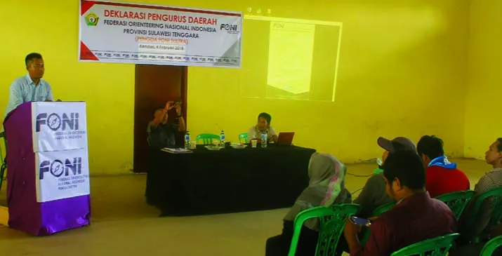 ZONASULTRA.COM,KENDARI – Para penggiat Orienteering di Sulawesi Tenggara, mendeklarasikan Pengurus Daerah Federasi Orienteering Nasional Indonesia Provinsi Sulawesi Tenggara (Pengda FONI Sultra). Kegiatan tersebut dilaksanakan di Aula Sinode SMA Swasta Oikumene, Minggu (4/2).
