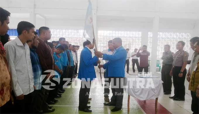 Ketua OKK KNPI Sultra, Abdul Salam mengukuhkan Ashar sebagai ketua KNPI dan Muhammad Asriadin sebagai sekretaris KNPI Bombana.