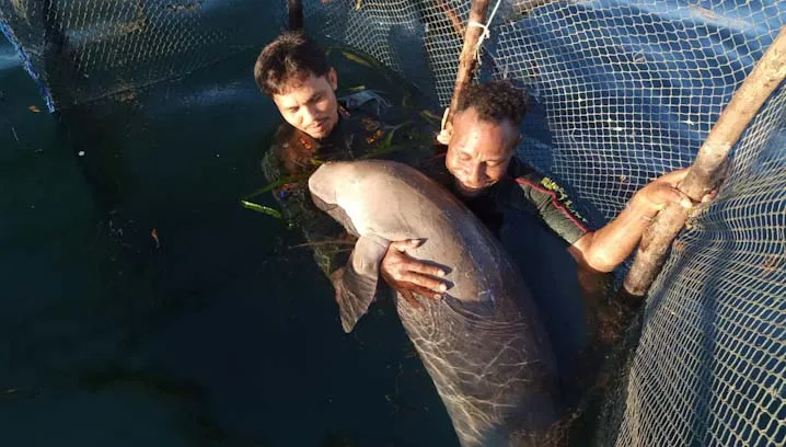 “Pukul 05. 00 WITA Tim Rescue tiba di desa Bahaba dan bertemu dengan warga setempat bernama Syawaludin yang mengetahui lokasi Dugong berada,” ujarnya.