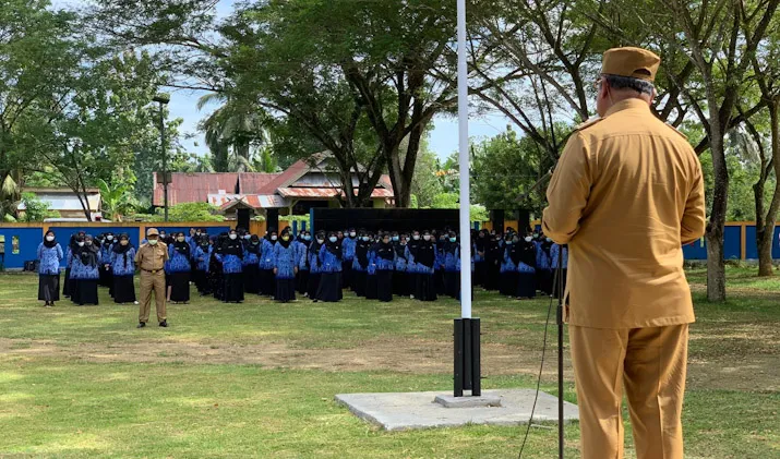 Apel - Bupati Mubar, Achmad Lamani saat memimpin apel gabungan di halaman kantor bupati, Senin (21/3/2022). (Kasman/ZONASULTRA.COM).