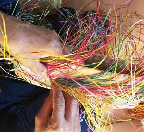 “Sekarang karena barang itu langka (kerajinan sorume) sementara itu ciri khasnya kita orang Tolaki, saya coba buatkan KW-nya dari bahan pandan hutan. Kami buat semirip mungkin. Perbedaannya, kalau sorume itu sangat halus sekali, kalau ini pandan masih agak kasar potongan-potongannya,” ujar Fatmawati Harli Tombili selaku Pemilik Galeri Rumah Laikanggu, 24 April 2022.