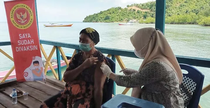 ZONASULTRA.COM, KENDARI – Guna memberikan pemerataan vaksinasi di wilayah Provinsi Sulawesi Tenggara (Sultra), Badan Intelijen Negara (BIN) Sultra menyambangi wilayah kepulauan, salah satunya Desa Panambea Barata, Kecamatan Moramo, Kota Kendari pada Kamis (16/12/2021) dengan menggunakan perahu.