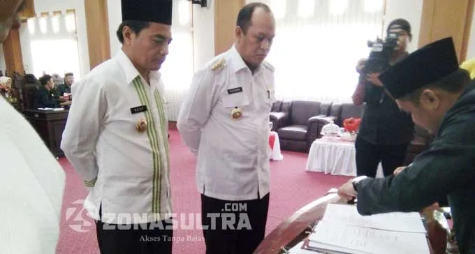 Rapat paripurna ditandai dengan penandatangan naskah persetujuan. Penandatangan dilakukan oleh Bupati Ruksamin dan Ketua DPRD, Jefri Prananda, Wakil Ketua I, Sudiro dan Wakil Ketua II, I Made Tarubuana. Yang disaksikan oleh Wakil Bupati Raup, anggota DPRD dan seluruh pimpinan SKPD lingkup pemda Konut. (B)
