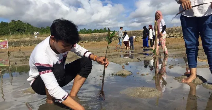 “Dalam rangka memperingati hari bumi internasional ini, kami melakukan penanaman sekitar 100 bibit mangrove,” kata mahasiswa yang kerap disapa Sasa, ditemui diblokasi penanaman, Sabtu (20/4/2019).