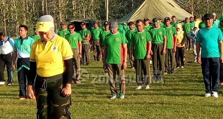 HUT TNI – Tentara Nasional Indonesia (TNI) memperingati Hari Ulang Tahun (HUT) yang ke-72 yang di pimpin langsung Dandim 1416 Muna, melaksanakan senam pagi, jalan sehat bersama masyarakat Muna Barat, unsur Muspida dan seluruh SKPD Pemerintah Daerah,di halaman bandara Sugimanuru,kecamatan Kusambi,Rabu (4/10/2017). (Laode Pialo/ZONASULTRA.COM)