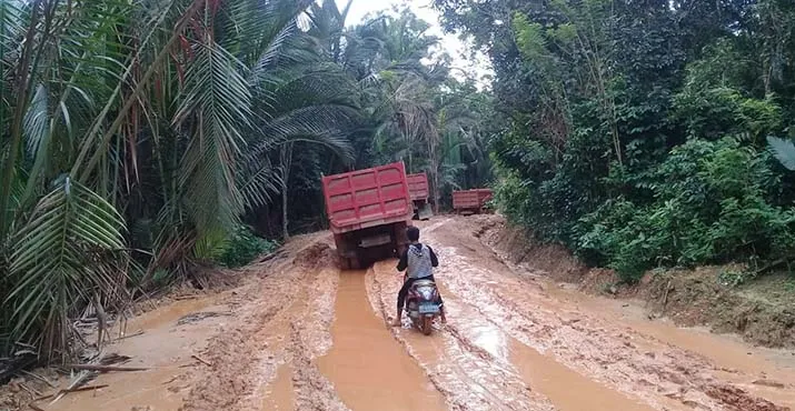 KONDISI JALAN - Kondisi jalan Poros Pohara - Laosu, Polua, Sampara, Kabupaten Konawe Selatan yang menjadi jalur pendistribusian LPG dari SPBE LPG Konawe Selatan untuk Kabupaten Konawe dan Konawe Kepulauan. (Foto Istimewa)