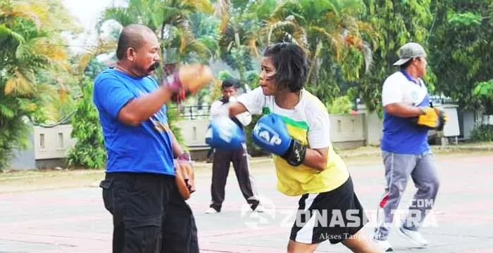 ZONASULTRA.COM, KENDARI – Petinju Sulawesi Tenggara, Erna Milai digenjot latihan di atas ring. Hal ini dilakukan untuk membiasakan Erna dengan suasana pertandingan.