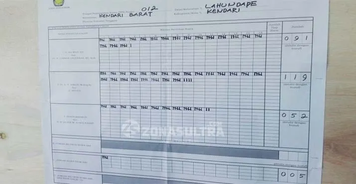Dalam perhitungan suara yang dilakukan di TPS itu, pasangan nomor urut 2 Asrun-Hugua memperoleh 119 suara. Sementara pasangan nomor urut 1 Ali Mazi-Lukman Abunawas memperoleh 91 suara dan pasangan nomor urut 3 Rusda Mahmud-Sjafei Kahar memperoleh 52 suara.
