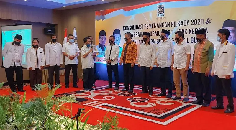 ZONASULTRA.COM, KENDARI – Partai Keadilan Sejahtera (PKS) menyerahkan formulir B.1-KWK kepada pasangan bakal calon (balon) kepala daerah (kada) yang diusung pada Pemilihan Kepala Daerah (Pilkada) serentak 2020 di Sulawesi Tenggara (Sultra). Formulir B.1-KWK diberikan sebagai syarat administrasi yang harus dibawa pasangan balon kada saat mendaftar ke Komisi Pemilihan Umun (KPU) pada awal September mendatang.