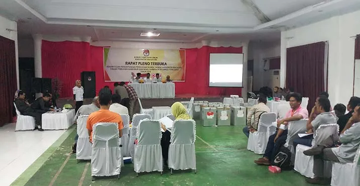 RAPAT PLENO - Komisi Pemilihan Umum Daerah (KPUD) Kabupaten Wakatobi menggelar rapat pleno terbuka rekapitulasi penghitungan perolehan suara tingkat Kabupaten Wakatobi dalam Pemilihan Gubernur (Pilgub) Sulawesi Tenggara (Sultra) tahun 2018, Rabu (4/7/2018). (Nova Ely Surya/ZONASULTRA.COM)