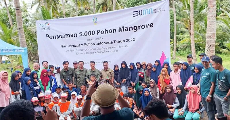 ZONASULTRA.ID, WANGIWANGI– PT Perusahaan Listrik Negara (PLN) Unit Induk Distribusi Sulawesi Selatan, Sulawesi Tenggara dan Sulawesi Barat (Sulselrabar) bersama Komunitas Maimo, pelajar dan Pemerintah Kabupaten Wakatobi, Sulawesi Tenggara (Sultra) melakukan penanaman 5.000 pohon Mangrove di wilayah Pantai Melaione, Desa Matahora Kecamatan Wangiwangi Selatan (Wangsel), Senin, (28/11/2022).