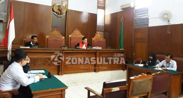 PRAPREADILAN – Sidang perdana praperadilan Bupati Buton non aktif Samsu Umar Abdul Samiun digelar di PN Jaksel, Senin (16/1/2017). Agenda sidang yang dipimpin oleh hakim tunggal Noor Edi Yono untuk mendengarkan gugatan pemohon yakni kuasa hukum Umar Samiun. (Rizki Arifiani/ZONASULTRA.COM)