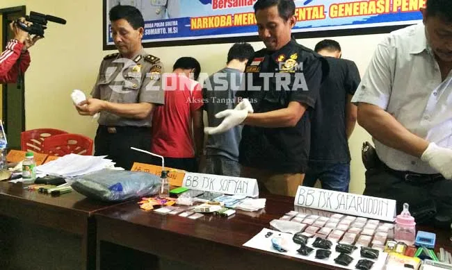 Wakil Direktur (Wadir) Dir Reskoba Polda Sultra, Ajun Komisaris Besar Polisi (AKBP) La Ode Aries Elfathar, didampingi Kasubid PPID Polda Sultra Kompol Dolfie Kumaseh mengatakan, kelima tersangka adalah ST, SF, MR, TP dan KK yang akhirnya diciduk, merupakan hasil penindakan dua rangkaian jaringan peredaran gelap narkotika di Sultra.