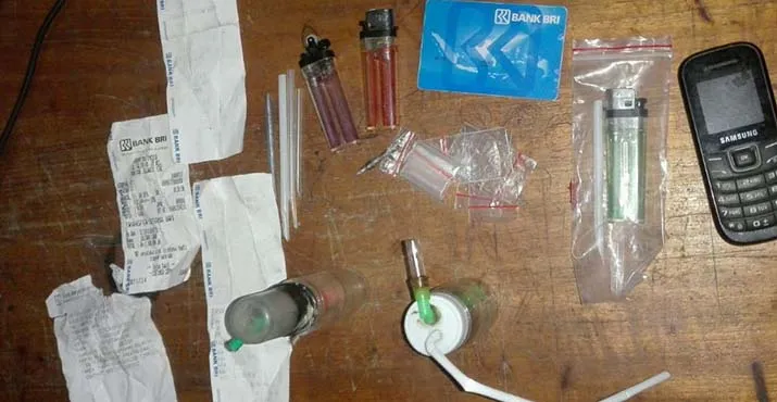 Di rumahnya ditemukan barang bukti berupa satu kantong saset yang di dalamnya terdapat 5 saset kecil berisi butiran kristal bening sabu, 2 buah alat isap sabu, 4 sendok takar sabu, 2 korek api gas, 4 saset kosong ukuran kecil, dan 1 buah sumbu.