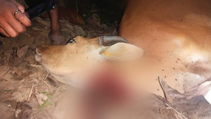 Tidak lama setelah itu warga berdatangan dan langsung merusak mobil bak terbuka tersebut. Para warga juga mencari pelaku ke dalam hutan. Berjarak 15 meter dari posisi mobil, mereka mendapati seekor sapi sudah terbaring mati yang terdapat luka irisan benda tajam di leher, luka bekas tembakan, dan di kaki terdapat ikatan tali nilon.
