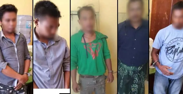 Keempat tersangka berasal dari Mubar masing-masing AS (35) dan AD (42) warga Desa Katangana, Kecamatan Tiworo Selatan, Mubar; M (35) warga Desa Mamuntu, Kecamatan Tiworo Tengah; dan MA (29) warga Desa Abadi Jaya, Kecamatan Maginti. Sementara tersangka dari Kota Raha berinisial LA (33) warga Jalan Gatot Subroto, Kelurahan Sidodadi, Kecamatan Batalaiworu, Kabupaten Muna.