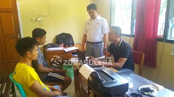 POLSEK KONDA - Kanit Reskrim Polsek Kecamatan Konda Kabupaten Konsel Aipda Mahdi bersama anggota saat melakukan pemeriksaan terhadap kedua tersangka pencurian mesin mobil. Sabtu (10/2/2018) (ERIK ARI PRABOWO/ZONASULTRA.COM).