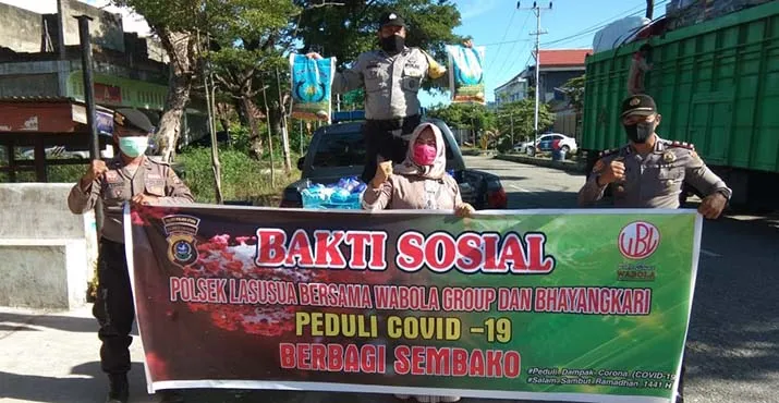 Kapolsek Lasusua, Iptu Jamarin Riche mengatakan bantuan sembako tersebut merupakan sumbangan dari Wabola Group atau persatuan dari pedagang perhiasan emas di Kolut.