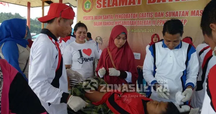 SUNAT MASSAL - Persatuan Perawat Nasional Indonesia (PPNI) Kabupaten Konawe Kepulauan (Konkep) mengelar sunatan massal, kegiatan tersebut dirangkaikan dengan pemeriksaan kesehatan gratis di lapangan TPI, Sabtu (25/8/2017) di Langara. (Arjab Karim/ZONASULTRA.COM)