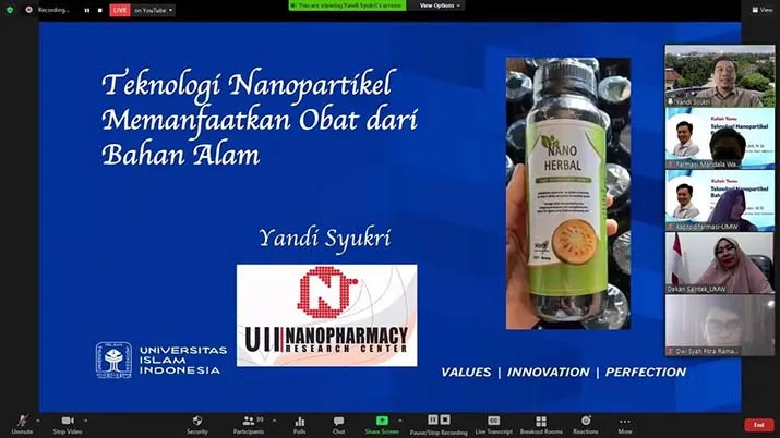 Untuk itu, Prodi Farmasi Fakultas Sainstek menggelar kuliah tamu online yang menghadirkan pemateri Ketua Jurusan Farmasi Fakultas MIPA Universitas Islam Indonesia Jogjakarta Yandi Syukri, yang juga sedang menyelesaikan pendidikan S-3 pada Program Doktoral di Fakultas Farmasi Universitas Padjajaran (Unpad) Bandung.