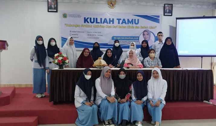 Program Studi S-1 Farmasi , Universitas Mandala Waluya (UMW) Kendari, menggelar kegiatan kuliah tamu dengan tema "Hubungan struktur aktivitas obat dari bahan kimia dan bahan alam" di Aula UMW Kendari, pada Kamis (4/5/2023).
