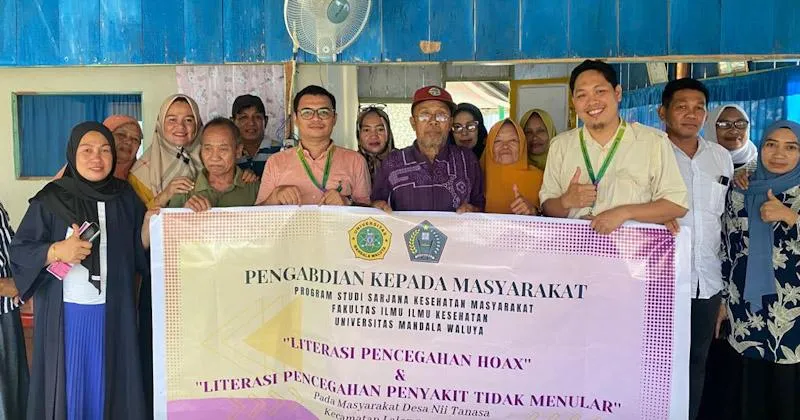 ZONASULTRA.ID, KENDARI – Program Studi (Prodi) S1 Kesehatan Masyarakat (Kesmas), Fakultas Ilmu Ilmu Kesehatan, Universitas Mandala Waluya (UMW) Kendari melaksanakan pengabdian pada Masyarakat dengan tema “Literasi Kesehatan media sosial untuk mencegah informasi Hoax,” di Desa Nii Tanasa, Kecamatan Lalunggasumeeto, Kabupaten Konawe, Sulawesi Tenggara (Sultra), Senin (19/6/2023).