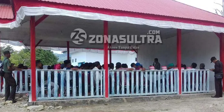 DIALOG – Bupati Buton Utara Abu Hasan saat saat berdialog dengan para petani, tokoh masyarakat, kepala desa dan lurah di Halaman Rujab Camat Bonegunu, Rabu (13/9/2017). (Irsan Rano/ZONASULTRA.COM)