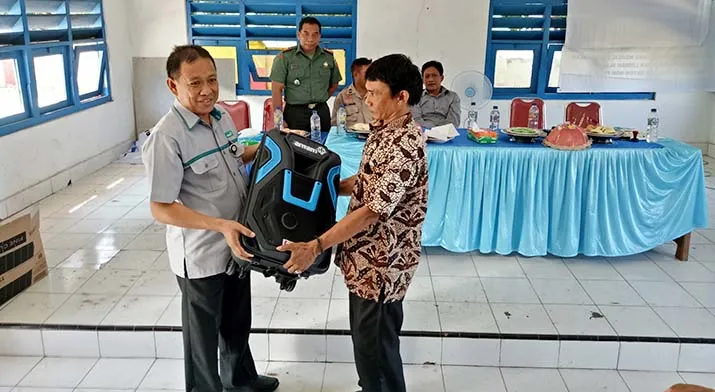 ANTAM - Eksternal Relation Manager PT Antam UBPN Sultra, Pamiluddin Abdullah menyerahkan bantuan satu unit sound sistem untuk pemerintah desa Tambea. Bantuan itu diserahkan usai menggelar silaturahim dengan warga desa setempat, Kamis (1/2/2018). (Abdul Saban/ZONASULTRA.COM)