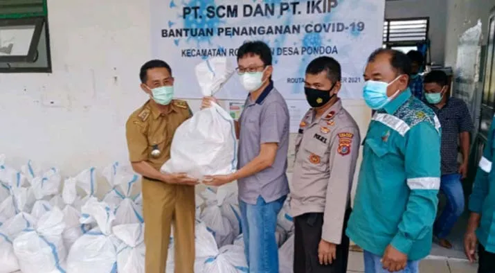 Sebanyak 1.120 paket bantuan diberikan oleh External Relation PT SCM & PT IKIP. Secara simbolis, bantuan sembako dan alat penanganan Covid-19 itu diterima oleh masing-masing perwakilan desa yakni unsur pemerintah desa seperti kepala desa, sekretaris desa, dan kepala dusun.