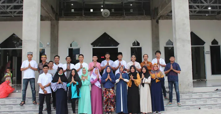 MAHASISWA BUTUR - Foto bersama Mahasiswa dan Pemuda Kelurahan Bangkudu usai berbagi takjil di depan Masjid At-Taqwa, Selasa (12/6/2018). (Foto Istimewa).