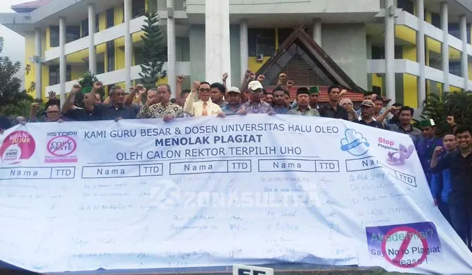 Sebagai tanda penolakan terhadap palgiarisme yang diduga dilakukan oleh rektor UHO terpilih, Muhammad Zamrun, puluhan dosen dan guru besar UHO juga menandatangani petisi sebagai bukti penolakan terhadap plagiat yang diduga dilakukan oleh Muhammad Zamrun.