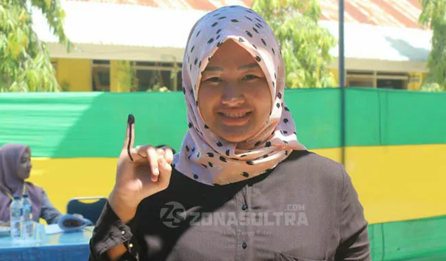 ZONASULTRA.COM, KENDARI – Putri pertama Gubernur Sulawesi Tenggara (Sultra), Sitya Giona Nur Alam menyalurkan hak pilihnya di TPS 1 Kelurahan Anaiwoi, Kecamatan Kadia, Rabu (15/2/2017). Giona datang mencoblos tidak bersama ayahnya, Nur Alam. Berdasarkan daftar pemilih tetap (DPT), Giona dan Nur Alam berada di papan pemilih urutan 42 dan 43.