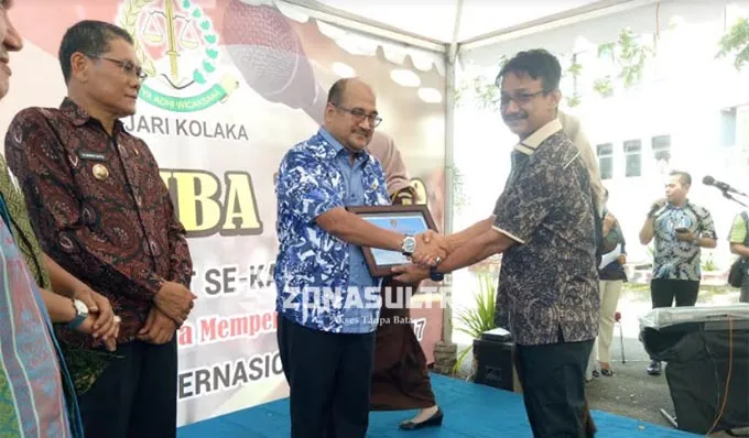 ZONASULTRA.COM, KOLAKA – Pengurus Persatuan Wartawan Indonesia (PWI) Provinsi Sulawesi Tenggara (Sultra), memberikan penghargaan berupa Pin Emas dan Piagam penghargaan kepada Kepala Kejaksaan (Kajari) Kolaka Jefferdian, serangkaian Hari Anti Korupsi Internasional (HAKI) 2017.