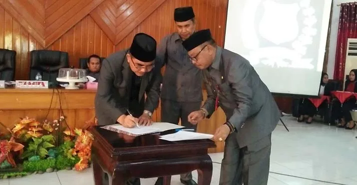 ZONASULTRA.COM, BURANGA – Setelah melalui proses pembahasan cukup panjang, Pemerintah Daerah dan DPRD Kabupaten Buton Utara akhirnya menyetujui bersama Rancangan Peraturan Daerah (Raperda) APBD tahun 2020. Hal ini ditandai dengan penandatanganan nota persetujuan antara Bupati Butur Abu Hasan, dan Ketua DPRD Butur Diwan, dalam rapat paripurna di Aula Bappeda setempat, Jumat (29/11/2019) sore.