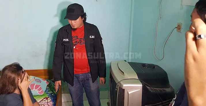 RAZIA - Pasangan diluar nikah saat diinterogasi pihak kepolisian di salah satu hotel di bilangan Jalan Seroja, Kema Raya, Kota Kendari, Kamis (26/4/2018) malam. (Lukman Budianto/ZONASULTRA.COM)