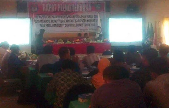 Rapat pleno rekapitulasi perhitungan perolehan suara dan penetapan hasil rekapitulasi tingkat kabupaten Konut baru berakhir Kamis (17/12/2015) dinihari pukul 01.00 Wita.