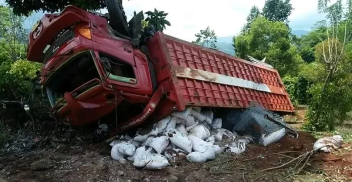 “Truk itu mencoba menghindari sepeda motor yang sedang menanjak dari arah berlawan. Karena rem blong, sehingga truk tersebut teguling dan menghantam pohon durian dan pohon mangga di perkebunan masyarakat,”kata Asyura.