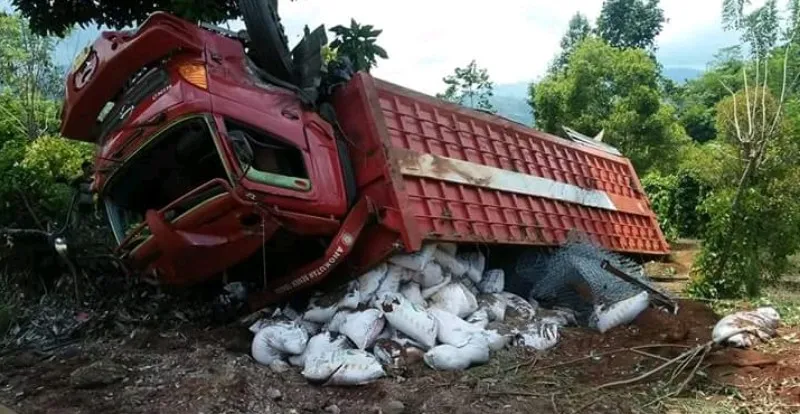 Rem Blong, Truk Pengangkut Pupuk Terguling di Kolut