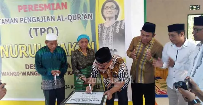 PERESMIAN - Bupati Kabupaten Wakatobi dalam peresmian TPQ di Desa Komala, Kecamatan Wangsel. Jumat, (24/8/2018). (Nova Ely Surya/ZONASULTRA.COM)